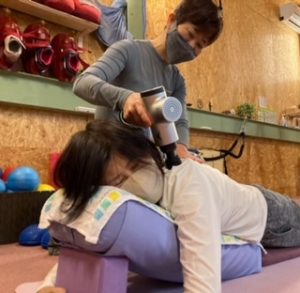 毎週朝8時~レッスンに通ってくださるTさま。 4年半続けてくださっています(^^) ハイパーボルトで全身をほぐした後、ピラティスチェアを使い「90-90カールアップ」のエクササイズ。 &nbs […]